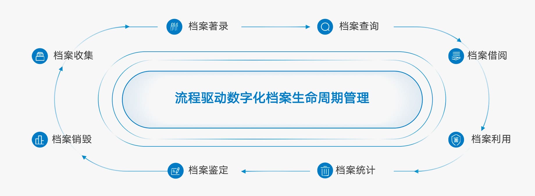 天潤智力數(shù)字化檔案管理系統(tǒng)實現(xiàn)從檔案的收集、著錄、查詢、借閱、利用、統(tǒng)計、鑒定、銷毀為一體的全生命周期管理,全程以流程驅(qū)動,同時底層搭載組織引擎、權(quán)限引擎、門戶引擎、集成引擎、報表引擎,為客戶提供個性化的數(shù)字化檔案管理方案。