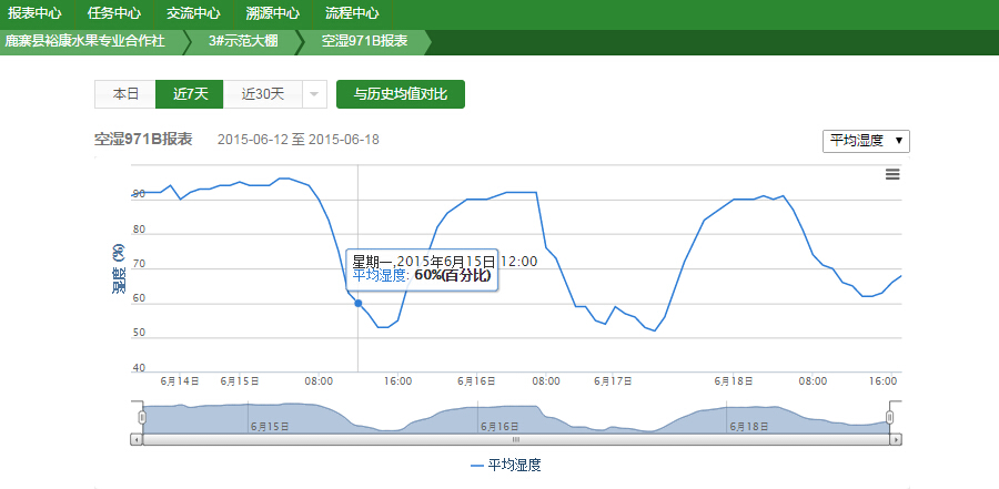 濕度對(duì)葡萄種植的影響也非常大,比如,葡萄園的空氣濕度連續(xù)一周都超過(guò)80%,就需要注意葡萄是否會(huì)發(fā)生灰霉病等疾病。而天潤(rùn)智力智能農(nóng)業(yè)監(jiān)控系統(tǒng)能夠?qū)崟r(shí)監(jiān)測(cè)空氣濕度,如果監(jiān)測(cè)到葡萄園連續(xù)一周的空氣濕度超過(guò)80%,就會(huì)給葡萄管理員發(fā)送預(yù)警,提醒他們注意預(yù)防灰霉病等疾病。