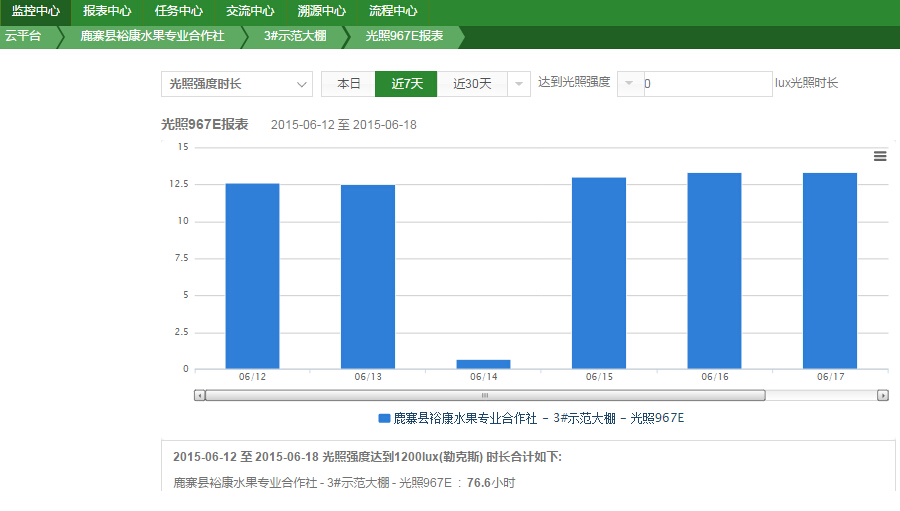 天潤(rùn)智力智能農(nóng)業(yè)云平臺(tái)可以全面監(jiān)測(cè)葡萄所受的光照強(qiáng)度,以此來(lái)判斷是否需要進(jìn)行人工補(bǔ)光以及人工補(bǔ)光的強(qiáng)度。進(jìn)而保證葡萄的品質(zhì)。