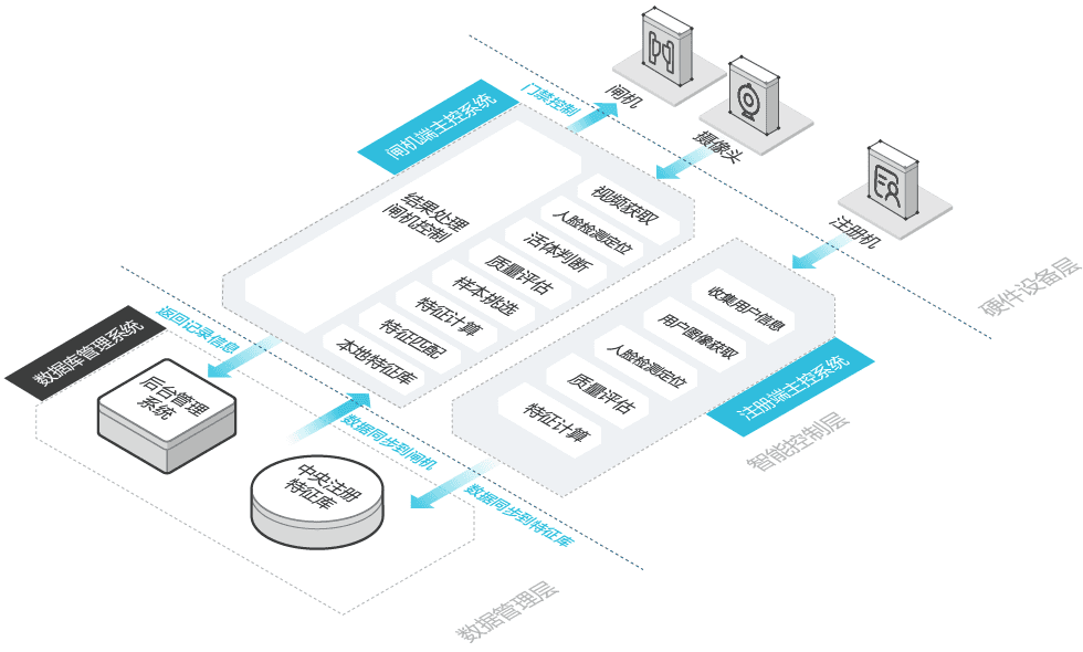 基于1:1或1:N的人臉身份驗(yàn)證,結(jié)合門禁盒子、閘機(jī)等硬件設(shè)備,實(shí)現(xiàn)刷臉過閘、樓宇訪客管理等應(yīng)用場(chǎng)景下的軟硬件一體化系統(tǒng)解決方案。