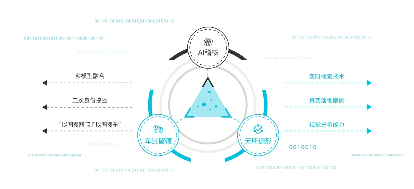 通過視頻結(jié)構(gòu)化,多模型融合和二次身份挖掘,“以圖搜車”,百億級(jí)超大規(guī)模圖像實(shí)時(shí)檢索技術(shù),關(guān)鍵視覺算法全自研,豐富的場景化,逐層遞進(jìn),實(shí)現(xiàn)車輛的無死角分析查詢。