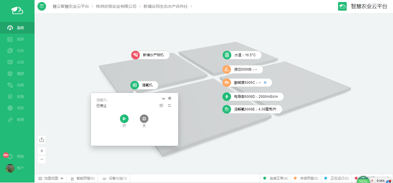 更重要的是,系統(tǒng)還可以通過(guò)監(jiān)控?cái)?shù)據(jù),自動(dòng)遠(yuǎn)程控制魚(yú)塘中的增氧設(shè)備。當(dāng)池塘溶氧量不達(dá)標(biāo),魚(yú)群面臨缺氧危險(xiǎn)時(shí),可以自動(dòng)打開(kāi)增氧機(jī),及時(shí)為魚(yú)群供給氧氣,減少不必要的損失。