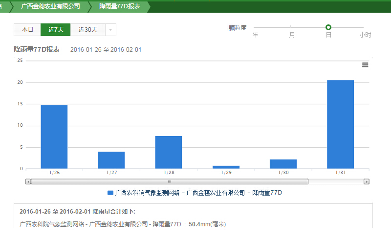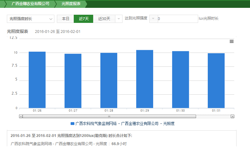 利用空氣溫度傳感器、空氣濕度傳感器、光照度、降雨量等傳感設(shè)備實(shí)時(shí)監(jiān)測(cè)香蕉種植的環(huán)境。實(shí)時(shí)監(jiān)測(cè)的環(huán)境情況數(shù)據(jù)每隔10秒鐘就上傳到“天潤(rùn)智力智慧農(nóng)業(yè)云平臺(tái)”,研究所人員只要登錄手機(jī)APP或者在電腦上,就可以遠(yuǎn)程隨時(shí)隨地查看香蕉種植基地的各項(xiàng)關(guān)鍵數(shù)據(jù)。所采集的數(shù)據(jù)實(shí)時(shí)上傳到天潤(rùn)智力智慧農(nóng)業(yè)云平臺(tái),并快速進(jìn)行統(tǒng)計(jì)分析,解決了科研人員對(duì)數(shù)據(jù)的采集分析需求,并確保了數(shù)據(jù)采集的精準(zhǔn)、快速、全面。