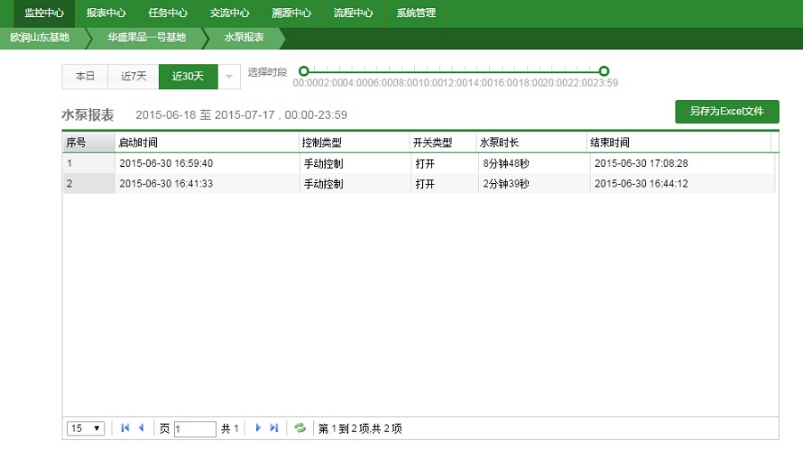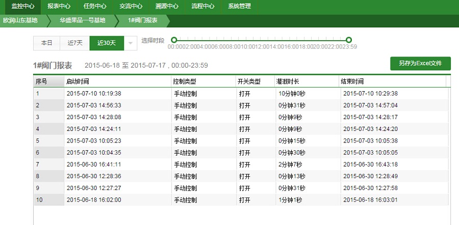 蘋果屬于需水量大的果樹,每年需要大量水分,而我國又是水資源貧乏的國家,尤其是北方地區(qū)水資源嚴(yán)重短缺,而且農(nóng)田灌溉用水占整個農(nóng)業(yè)用水的95%,因此應(yīng)用節(jié)水灌溉技術(shù)就顯得十分必要和重要。2015年6月,華盛果品承接山東沂源縣水利部農(nóng)業(yè)水價改革節(jié)水示范項目,引入歐潤的灌溉設(shè)備以及天潤智力智慧農(nóng)業(yè)云平臺技術(shù),實現(xiàn)全自動化遠程灌溉,徹底結(jié)束傳統(tǒng)人工灌溉模式。