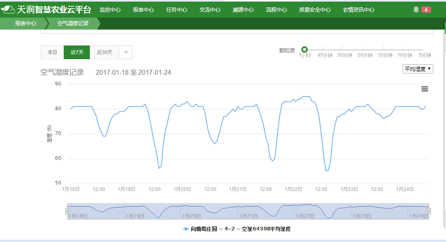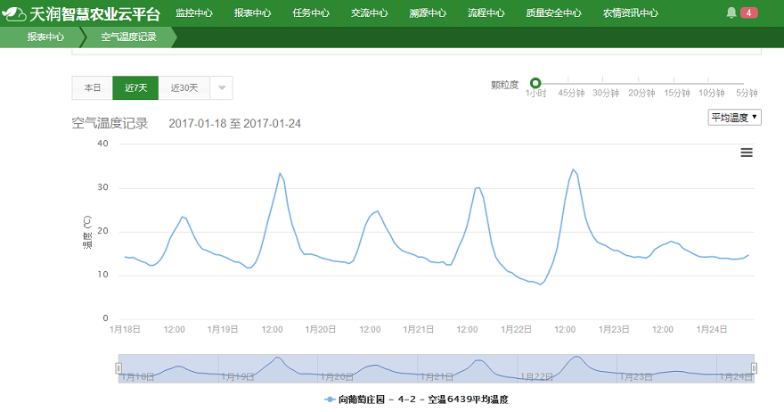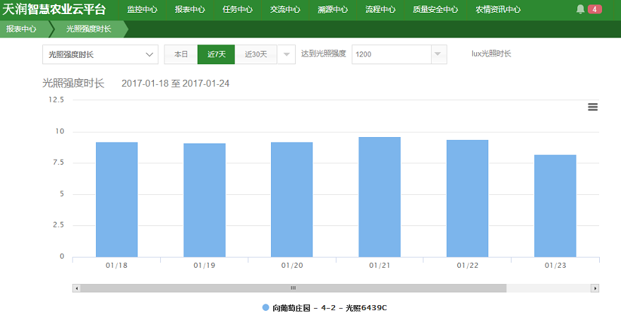“安全、優(yōu)質(zhì)”是向葡萄秉承的生產(chǎn)理念。葡萄屬于精細作物,生產(chǎn)過程中對溫度、水分、光照都有嚴(yán)格的要求。溫度增長過快可能導(dǎo)致花期受精不良;水分過多,就會提高葡萄霜霉病、灰霉病的發(fā)病率;光照過強則會造成灼傷,因此在葡萄的生產(chǎn)過程中,需要投入大量的人力進行監(jiān)督管理。但即便是投入了人力,人工操作的隨意性特點,也難以保證操作的實時性,極易造成葡萄品質(zhì)的不穩(wěn)定。為了穩(wěn)定和提高葡萄的品質(zhì),向葡萄同時引進了天潤智力智慧農(nóng)業(yè)監(jiān)控系統(tǒng),啟動葡萄園的智能化生產(chǎn)。