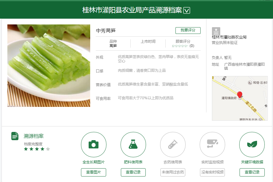 借助“天潤智力農(nóng)產(chǎn)品溯源系統(tǒng)”“91溯源平臺”,灌陽縣農(nóng)業(yè)局成功實(shí)現(xiàn)對葡萄、萵筍、大米三大農(nóng)產(chǎn)品的溯源體系建立,嚴(yán)格監(jiān)控農(nóng)產(chǎn)品農(nóng)資、生產(chǎn)、加工、流通各環(huán)節(jié)。消費(fèi)者通過掃描產(chǎn)品包裝上的二維碼或者條形碼,即可查看農(nóng)產(chǎn)品的基本信息(產(chǎn)品名稱、生產(chǎn)者、產(chǎn)品品種、產(chǎn)地等)、溯源檔案(全生長期圖片、肥料使用記錄、農(nóng)藥使用記錄、關(guān)鍵環(huán)境數(shù)據(jù))、產(chǎn)品認(rèn)證信息、產(chǎn)品簡介等信息,91溯源平臺給灌陽縣農(nóng)業(yè)局的優(yōu)質(zhì)生態(tài)農(nóng)產(chǎn)品一個(gè)展示的平臺,同時(shí)有力地把好農(nóng)產(chǎn)品安全關(guān),將更多優(yōu)質(zhì)、安全的農(nóng)產(chǎn)品品牌“捆綁”,為灌陽縣打造灌陽“生態(tài)農(nóng)產(chǎn)品品牌群”,打造“可溯源的灌陽”打下了堅(jiān)實(shí)的基礎(chǔ)。2014年灌陽縣在在縣城大市場蔬菜檢測室共檢測蔬菜品種41個(gè),抽檢蔬菜樣品16000個(gè),抽檢合格率達(dá)100%。同時(shí),為確保蔬菜的全程質(zhì)量安全,鄉(xiāng)鎮(zhèn)流動(dòng)檢測站檢測蔬菜品種32個(gè),抽檢樣品2869個(gè),抽檢合格率達(dá)100%;蔬菜農(nóng)藥殘留例行檢測,共抽檢樣品1287個(gè),檢測合格率99.9%。確保了全縣蔬菜從生產(chǎn)到餐桌的安全,使民眾真正吃上“放心菜”。