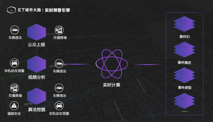 ET城市大腦開放平臺在百億個節(jié)點(diǎn)萬億條邊的超大規(guī)模網(wǎng)絡(luò)上,處理EB級別數(shù)據(jù),通過模糊認(rèn)知反演算法,發(fā)現(xiàn)復(fù)雜場景背后的超時、超距弱關(guān)聯(lián),并將算法能力通過引擎的形式對外提供。