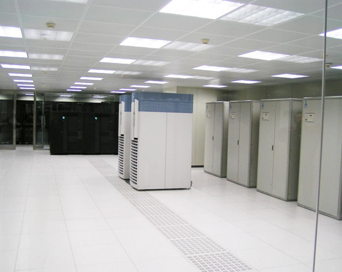 網(wǎng)絡(luò)中心機(jī)房分為服務(wù)器機(jī)房、網(wǎng)絡(luò)機(jī)房、測試機(jī)房、監(jiān)控室、配電室、消防氣瓶間和更衣室等區(qū)域,中間以落地的鋼化防火玻璃墻隔斷,墻面飾以彩鋼板,地面安裝防靜電地板,天花板采用微孔鋁扣天花,天面和地面預(yù)先做防塵保溫處理。中心機(jī)房配有配電系統(tǒng)、防雷接地系統(tǒng)、綜合布線系統(tǒng)、管網(wǎng)式氣體消防系統(tǒng)、環(huán)境監(jiān)控系統(tǒng)、通風(fēng)制冷系統(tǒng)、KVM系統(tǒng)等。