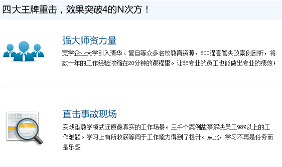 新提升為主管,還在于沒有經(jīng)驗打造團隊而苦惱? 業(yè)務(wù)擴展,人員增長帶來的物品管理總是讓你處于崩潰邊緣? 為什么TA總是話題中心,而我總是插不上話? 為什么別人的業(yè)績像起飛的火箭,而我的業(yè)績像中國股市? 企業(yè)大學(xué)為您解惑,數(shù)百位世界500強成功人士用切身經(jīng)歷面對面為您點撥。