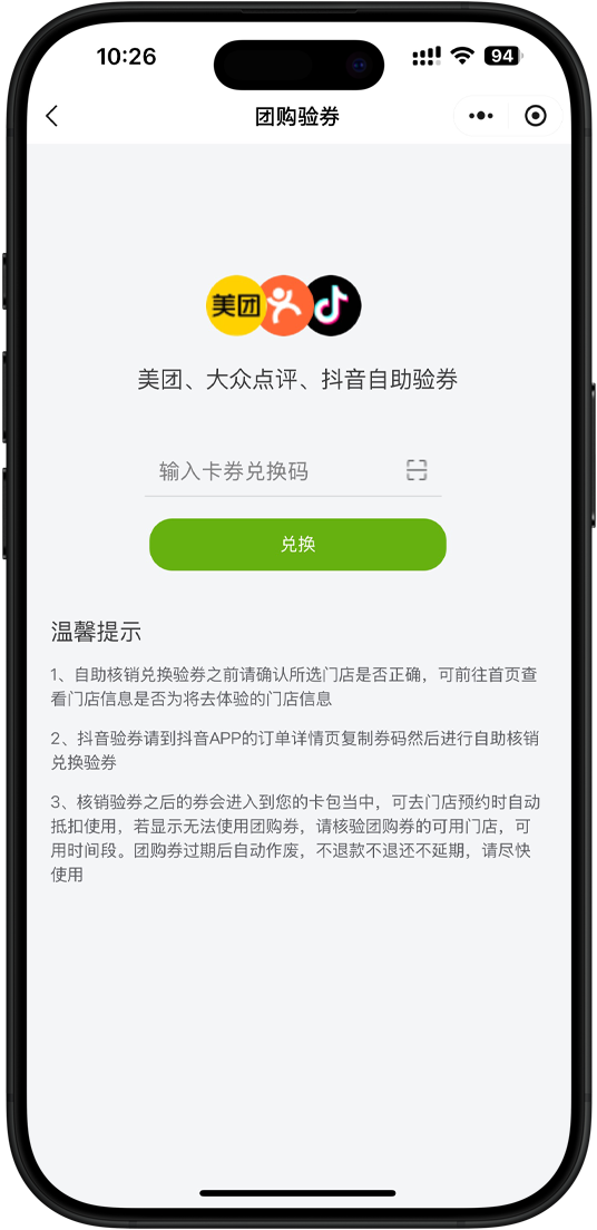 支持美團(tuán)、大眾點(diǎn)評(píng)、抖音核銷