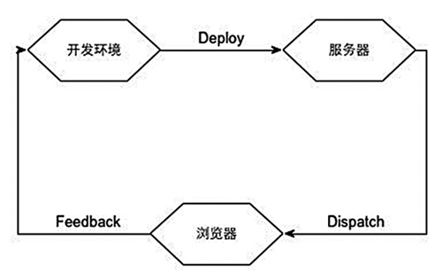通過這個閉環(huán),特別是從瀏覽器回到開發(fā)環(huán)境這個環(huán)節(jié),前端工程師會通過具體產(chǎn)品和終端用戶進行頻繁的信息交換,在最終的產(chǎn)品中進行信息收集,再將信息轉(zhuǎn)化為指標或其他能夠衡量產(chǎn)品質(zhì)量的形式,以此指導工作方向。