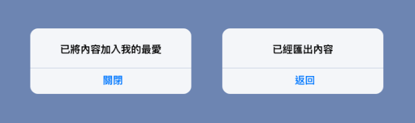 避免什么訊息都用警告框表示。無(wú)論是跟 App 有關(guān)的新訊息,成功收藏內(nèi)容時(shí)的通知,開(kāi)啟 App 時(shí)的新功能介紹等等,在思考使用者的核心體驗(yàn)之后,再考慮是否真的需要。