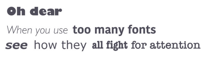 正常情況下,使用一種字體就行,有時候也可以為了突出也可以使用兩種字體,但是這種字體之間的差異應(yīng)該降到最低,在設(shè)計上盡量達(dá)到和諧。