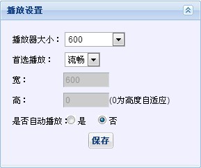 發(fā)布前,可以設(shè)置“播放器大小”、首選播放的“碼率”、是否“自動播放”,點(diǎn)擊保存設(shè)置,如下圖;