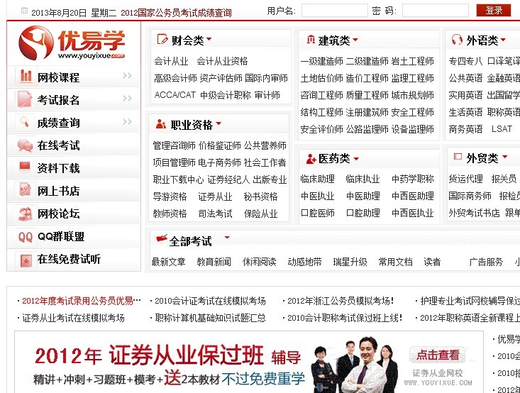 優(yōu)易學(xué)(www.youyixue.com)網(wǎng)站創(chuàng)辦于2007年6月,在教育部基礎(chǔ)教育司相應(yīng)中央提出的加強(qiáng)大學(xué)生思想文化道德建設(shè)的號(hào)召下成立,本著教育為己任,不斷開(kāi)拓大學(xué)生的自身修養(yǎng)和文化水平,是目前國(guó)內(nèi)最大的教育考試類網(wǎng)站之一,同時(shí)我們是中東部地區(qū)訪問(wèn)量最大的教育類網(wǎng)站,為谷歌全球新聞中心一萬(wàn)家合作伙伴之一,24小時(shí)不間斷為大家發(fā)布教育考試資訊…