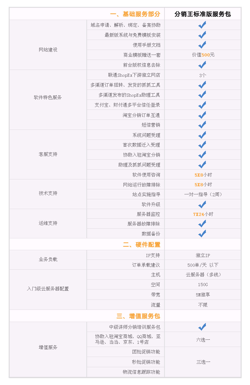 分銷王標準套餐適合初入電子商務(wù),開辟分銷渠道的中小企業(yè)、個人以及創(chuàng)業(yè)團隊,為您提供入門級云服務(wù)器和最新版分銷王網(wǎng)上商店系統(tǒng)。