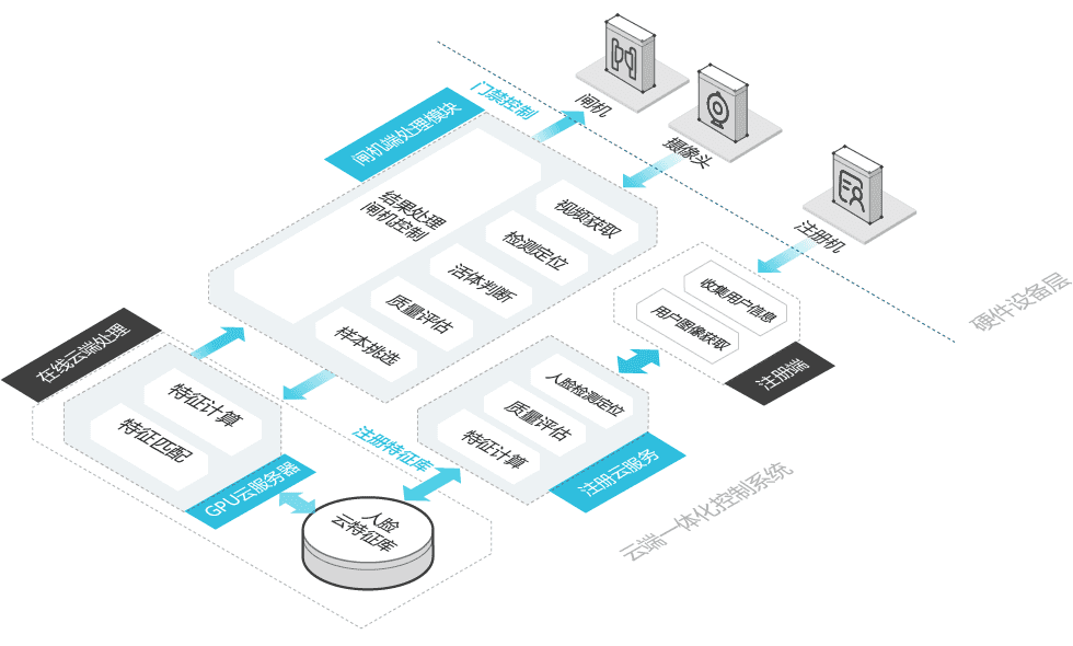 基于1:1或1:N的人臉身份驗(yàn)證,結(jié)合門禁盒子、閘機(jī)等硬件設(shè)備,實(shí)現(xiàn)刷臉過閘、樓宇訪客管理等應(yīng)用場(chǎng)景下的軟硬件一體化系統(tǒng)解決方案。