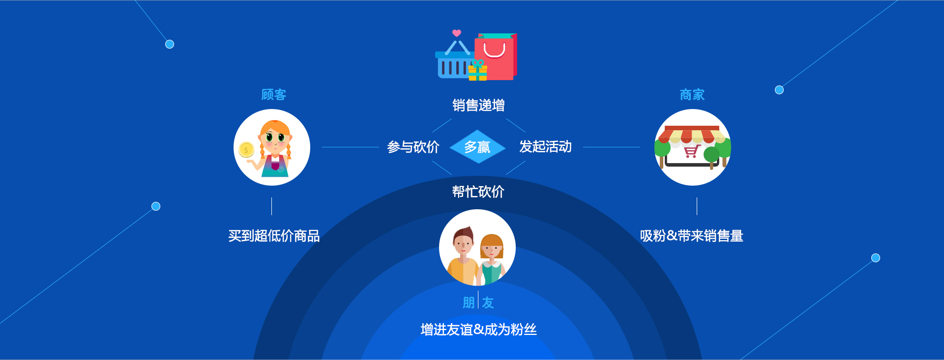 商家,一個商品不僅賣給了一個顧客,還會帶來該顧客身邊的很多粉絲