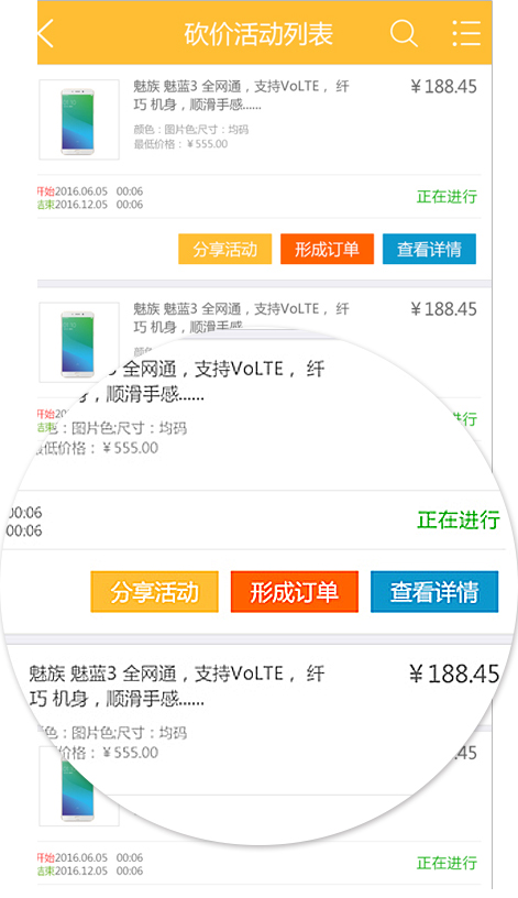 3、發(fā)起活動的顧客,可以即時的看到幫他砍價的朋友是誰,砍了多少錢,且需砍到商家設(shè)定的最低價時才能購買。