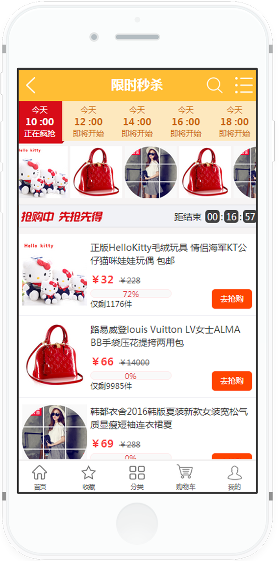 商家開設(shè)秒殺欄目,每個商品限制購買N件,商家提前設(shè)置商品,體現(xiàn)在前臺,商品開始進(jìn)行倒計時,倒計時結(jié)束,商品開售,開售時間多少分鐘或者多少秒,由商家設(shè)置,例如A產(chǎn)品商家設(shè)置倒計時24小時,前臺開始倒計時,早上十點開售,10點1分25秒結(jié)束,10點-10點1分25秒期間搶到的顧客也要在這個時間段進(jìn)行付款,沒有付款成功算失敗。
